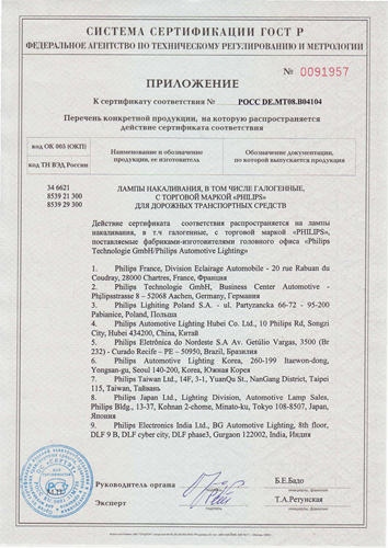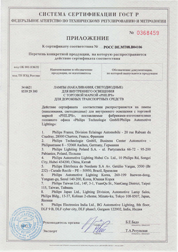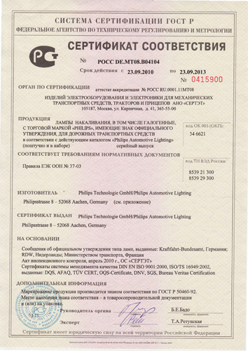 Сертификат лампы накаливания Philips